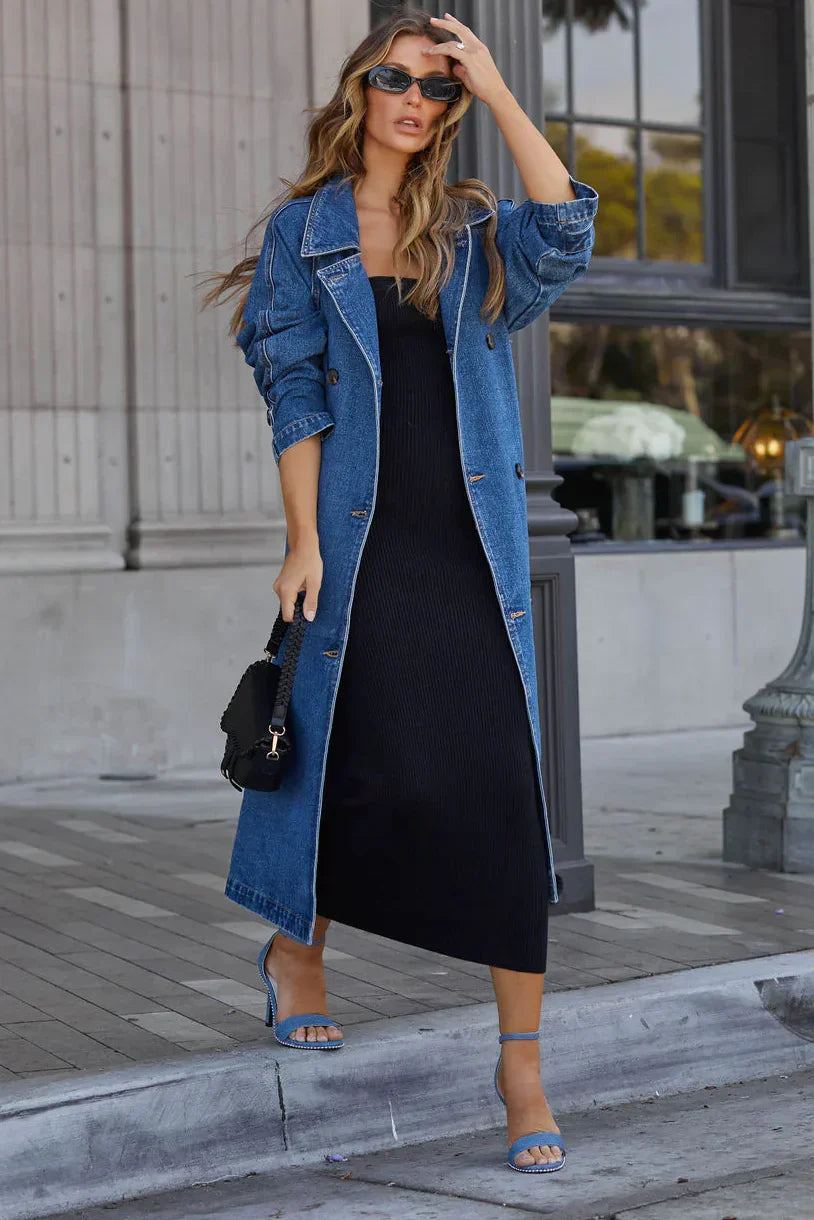 Verleihen Sie Ihrer Garderobe zeitlose Eleganz mit diesem langen, geknöpften Damenmantel. Der klassische Knopfverschluss und der passende Gürtel ermöglichen eine individuelle Passform, die Ihre Figur vorteilhaft betont. Die längere Länge sorgt für zusätzlichen Schutz und Komfort und macht ihn ideal für kühlere Tage. Vielseitig und raffiniert – dieser Mantel ist perfekt fürs Büro, für Freizeitaktivitäten oder als Alltagsbegleiter zu Kleidern, Hosen oder im Lagenlook.