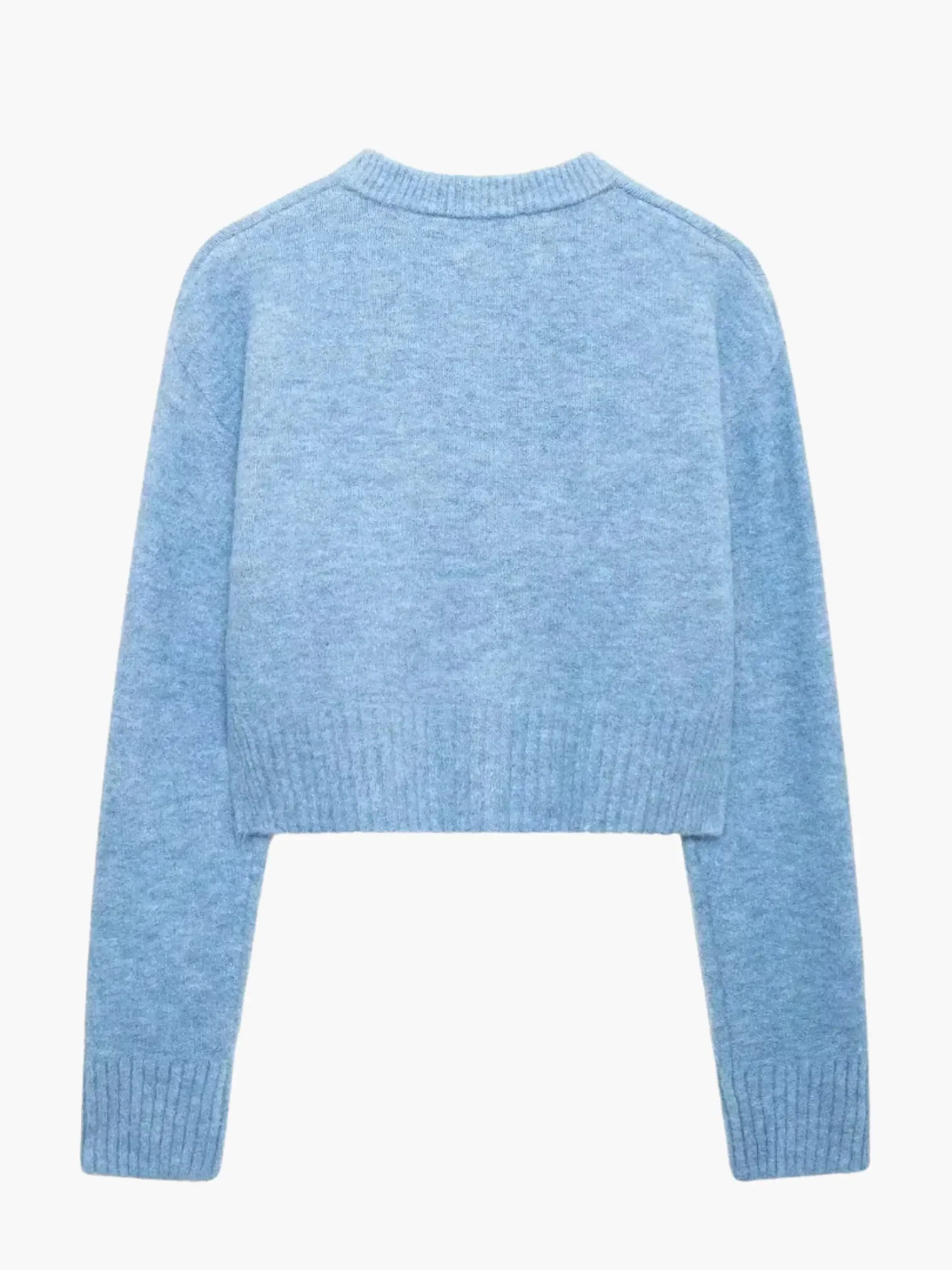 Diese kuschelige Strickjacke mit ihrer sanften Strickstruktur wärmt angenehm, ohne zu beschweren. Die kürzere Länge verleiht jedem Outfit eine moderne, verspielte Note und macht sie perfekt kombinierbar mit High-Waist-Jeans, Röcken oder Kleidern. Bequem und vielseitig kombinierbar, ist sie ideal für entspannte Tage, gemütliche Ausflüge oder um Ihren Alltagslooks einen weichen Touch zu verleihen. Ein charmantes Must-have für jede Garderobe.